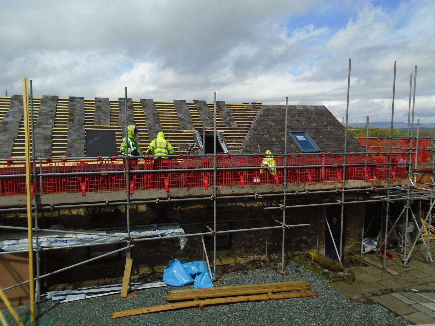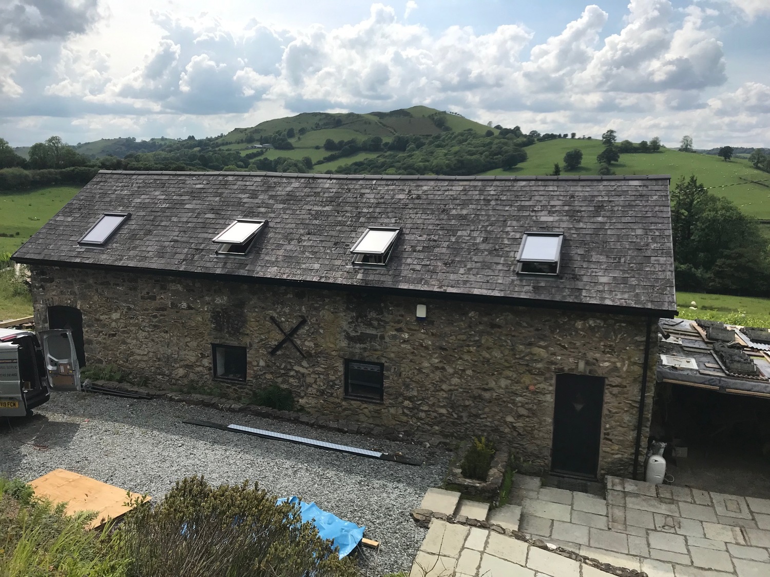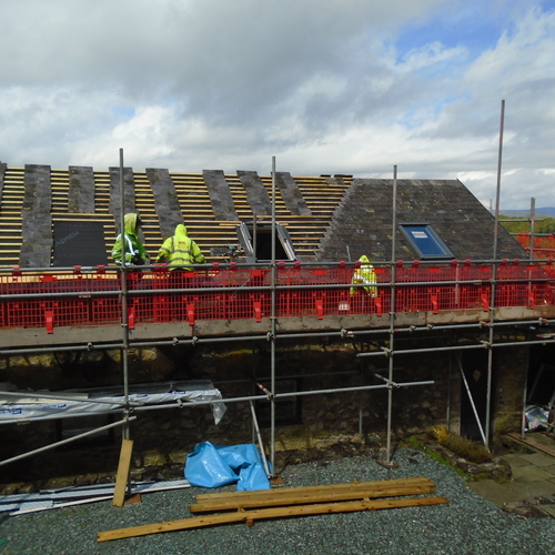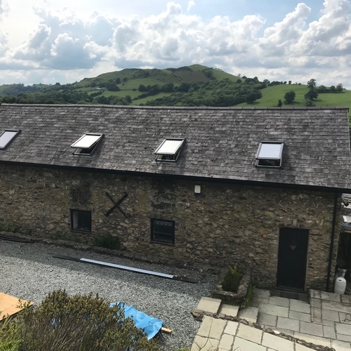 Barn conversion new roof being fitted with Welsh slates