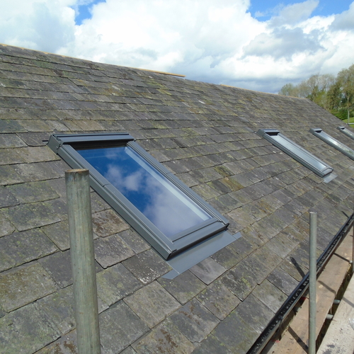 New slate roof on barn conversion with Velux windows