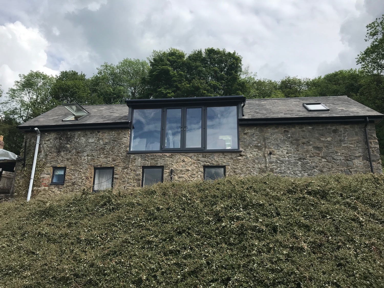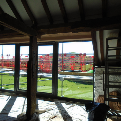 Barn conversion after we removed windows and made opening wider and elevated roof over to allow new glazing,ready for balcony