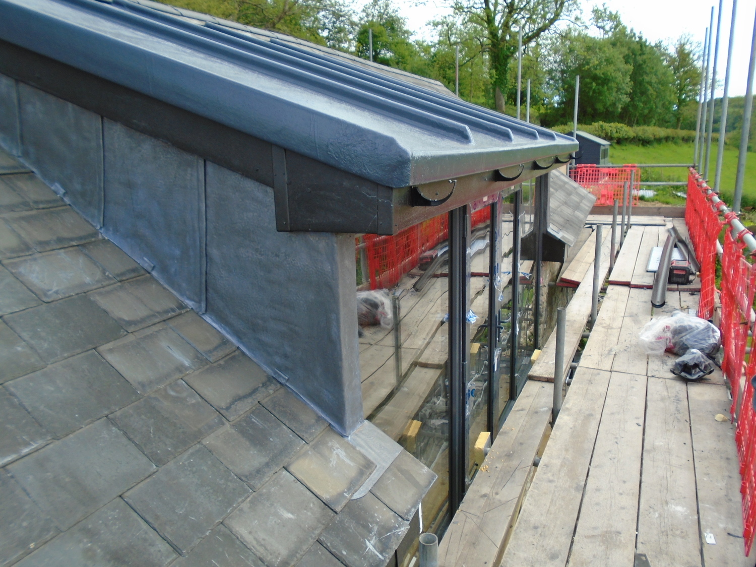 Side view of new elevated roof with GRP fibreglass and lead cladding